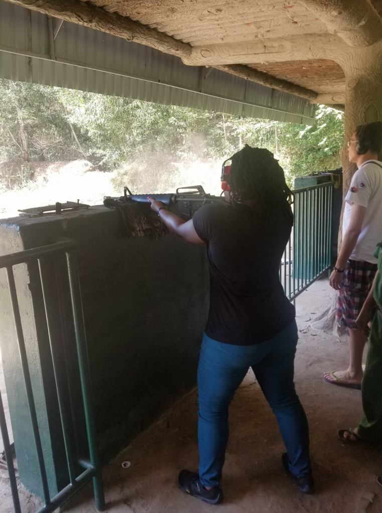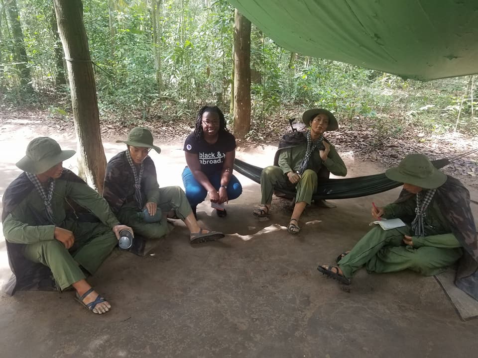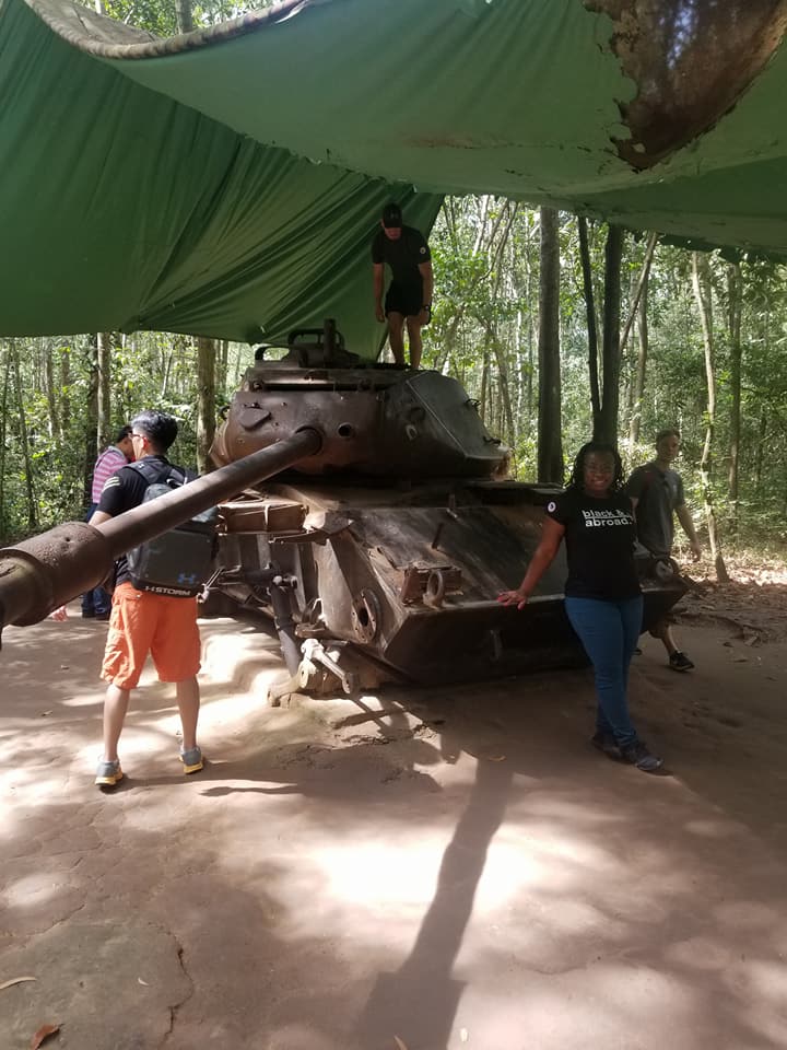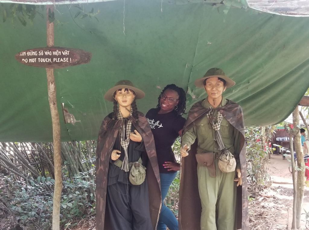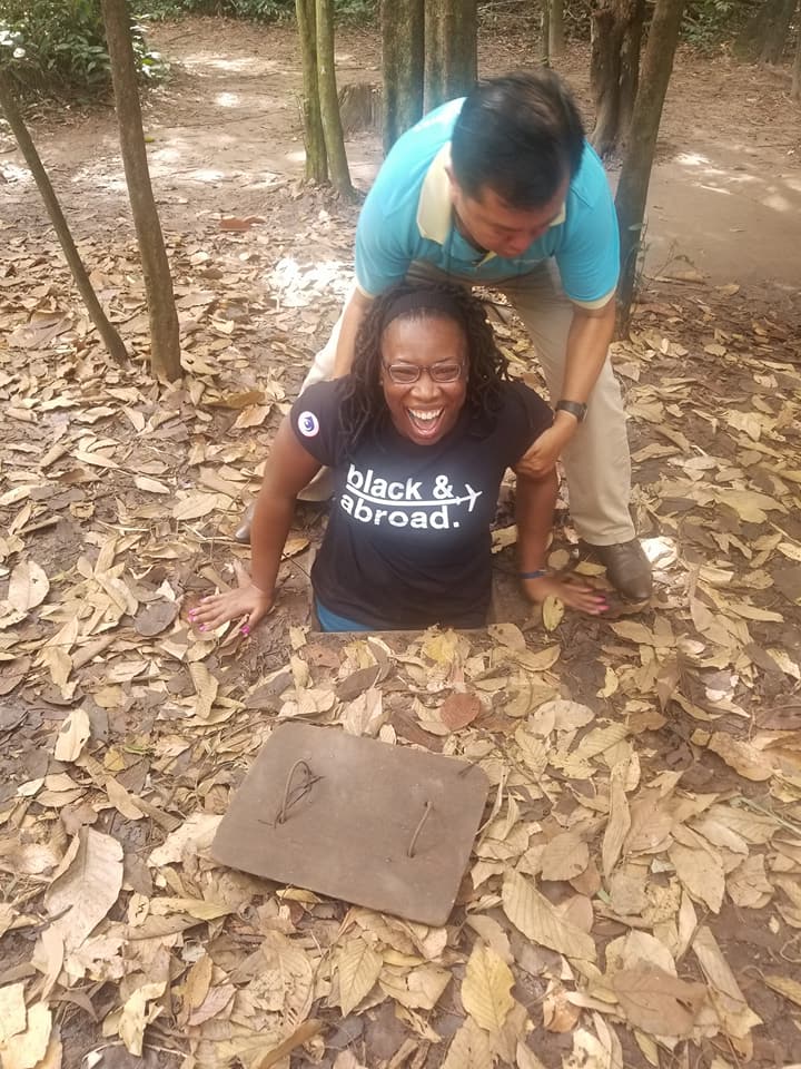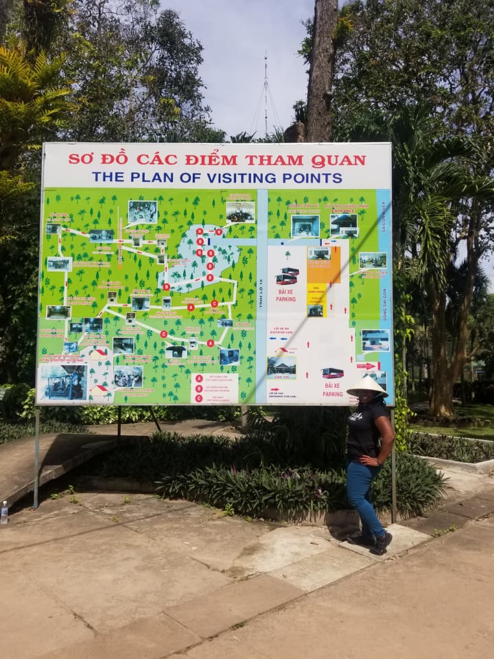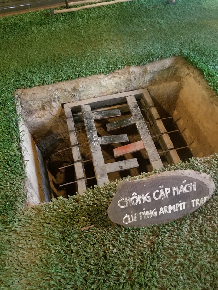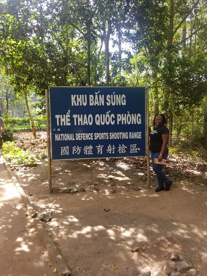 Visiting the Cu Chi Tunnels and touring Ho Chi Minh City, Vietnam. The Cu Chi Tunnels were used by the Viet Cong soldiers as hiding spots during combat.