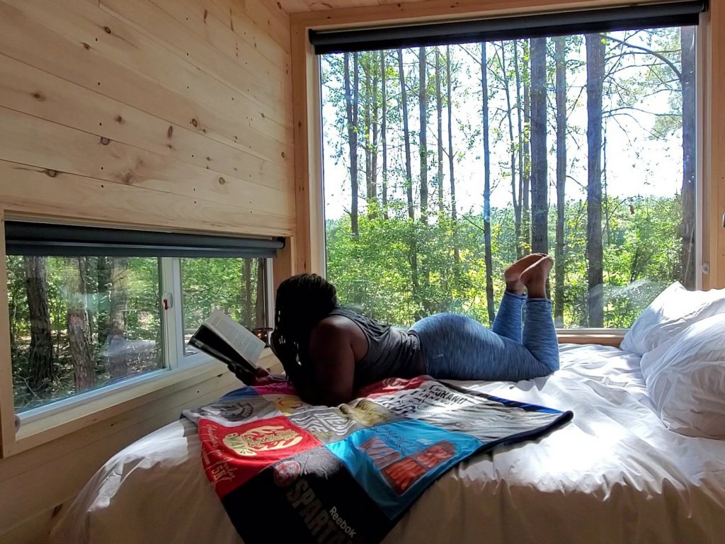 If you are active on social media you may have seen the ads for The Getaway House. The Getaway House prides itself in being the perfect getaway from the hustle and bustle of the city. There are several locations in different states with each location being 1 to 2 hours away from the closest major city. Reservations are made via the website (https://getaway.house). Just pick the getaway location, the number of guests, and the number of beds. Approximately 1 week before your stay, Team Getaway will send you a text and email to provide you the necessary details regarding your upcoming stay and the day of your arrival you will receive another email and text with the code and name to your cabin. This is a contactless check in but Team Getaway is always available via text. They are super responsive and willing to help in any way to make your stay enjoyable. The cabin for 2 has a queen size bed, mini refrigerator, 2 burner stove, sink, pots, pans, and utensils. The huge window in the cabin really makes you feel like you are one with nature and almost makes you forget that you are just an hour or two from the city. There is a cell phone lock box to really help you disconnect and they also provide you with a complimentary smores package. The cabin has a pretty roomy bathroom for a tiny cabin and there is also a table a chair. The outside boasts a pair of chairs with a firepit and a picnic table. There is also wood avaliable in a waterproof container for the firepit. The Getaway House Houston location has 46 cabins. Each cabin has a different name and they are spaced to where you are not able to completely see the guests in the cabin next to you. There is also a walking trail for a bit of exercise during your stay. Overall this was a great experience and I definitively plan on making a future reservation with The Getaway House!