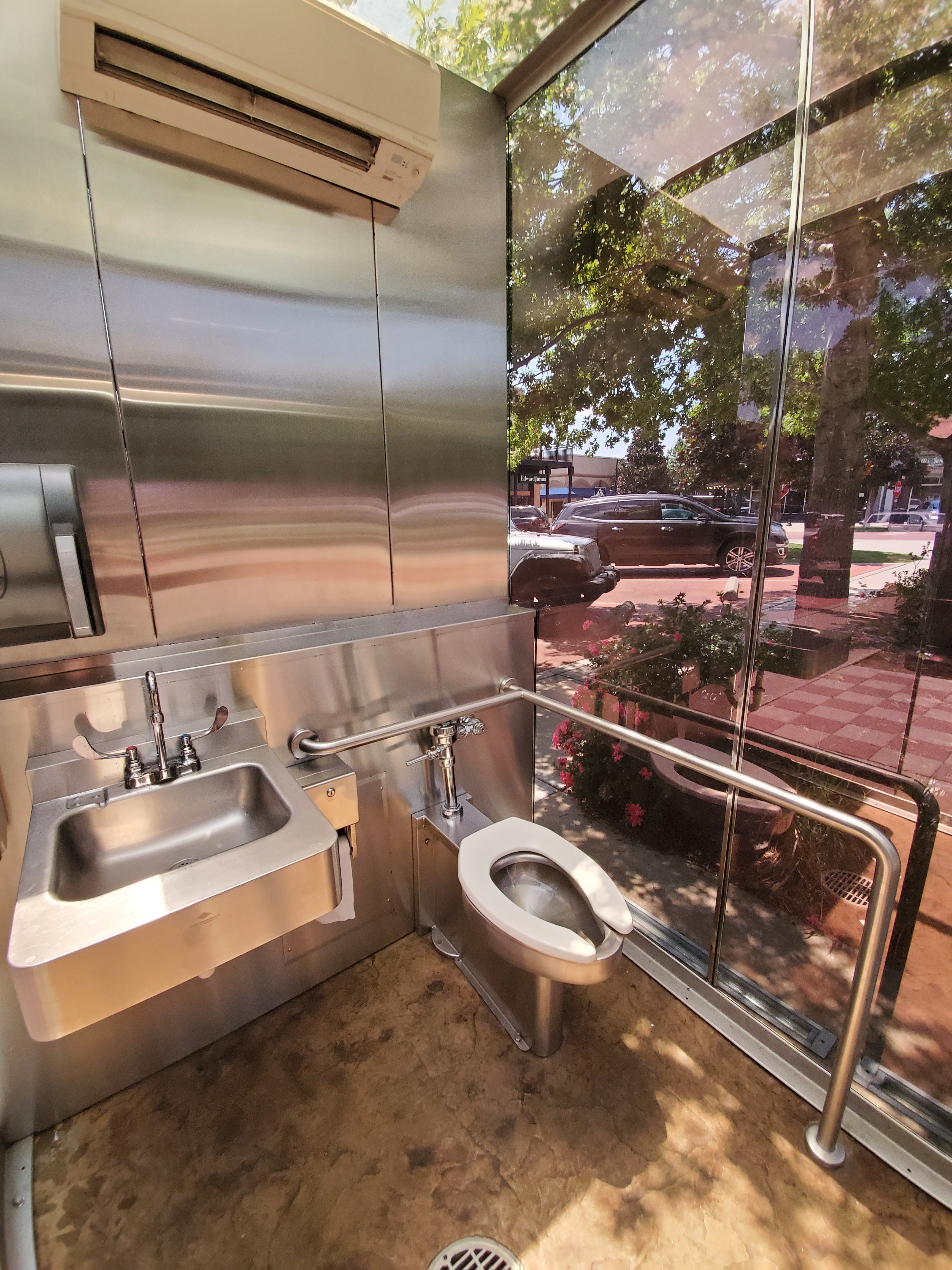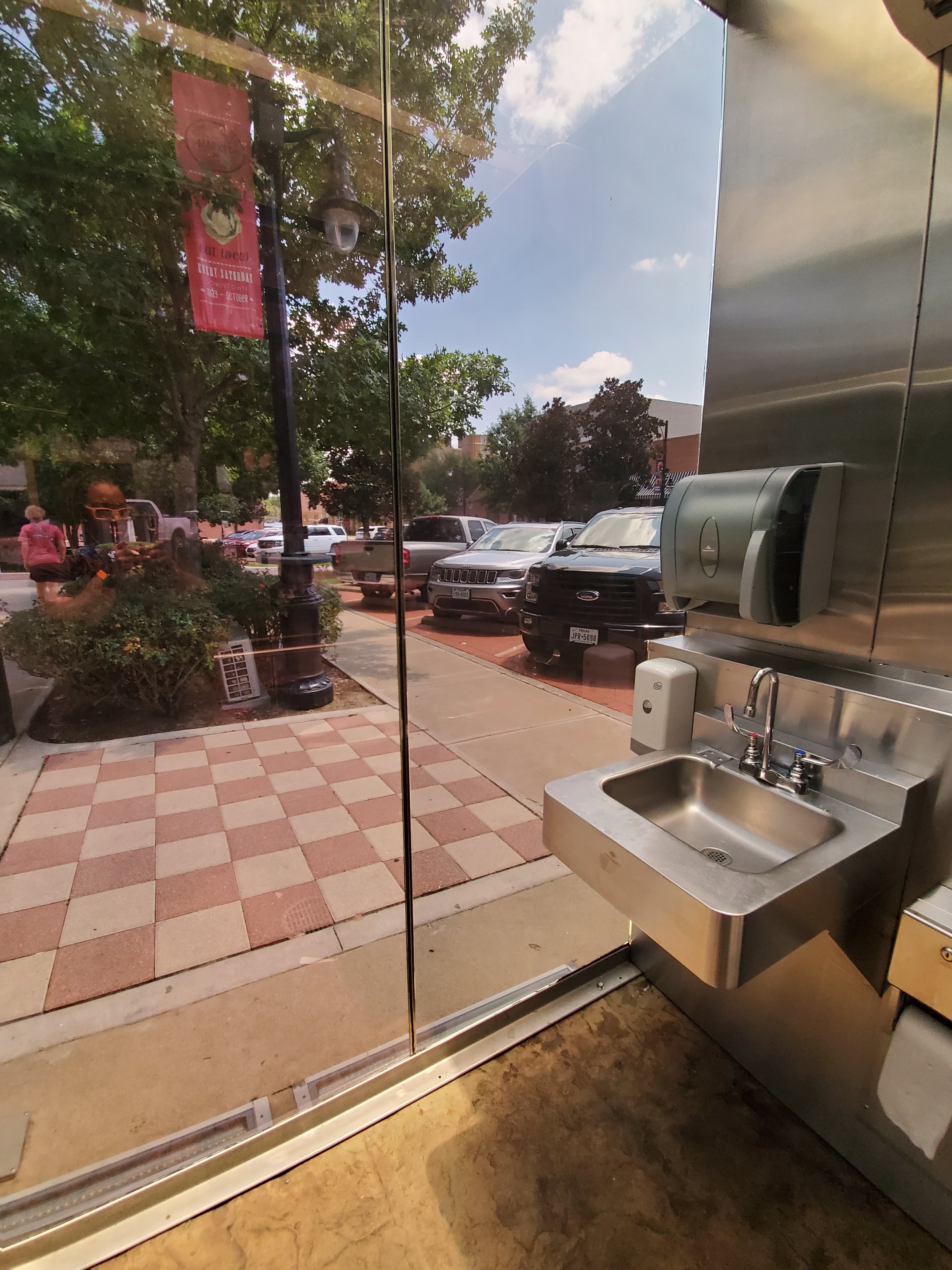 In Sulphur Springs, Texas there is a public restroom in the town square with one way mirrored glass that allows you to see out but others can’t see in!