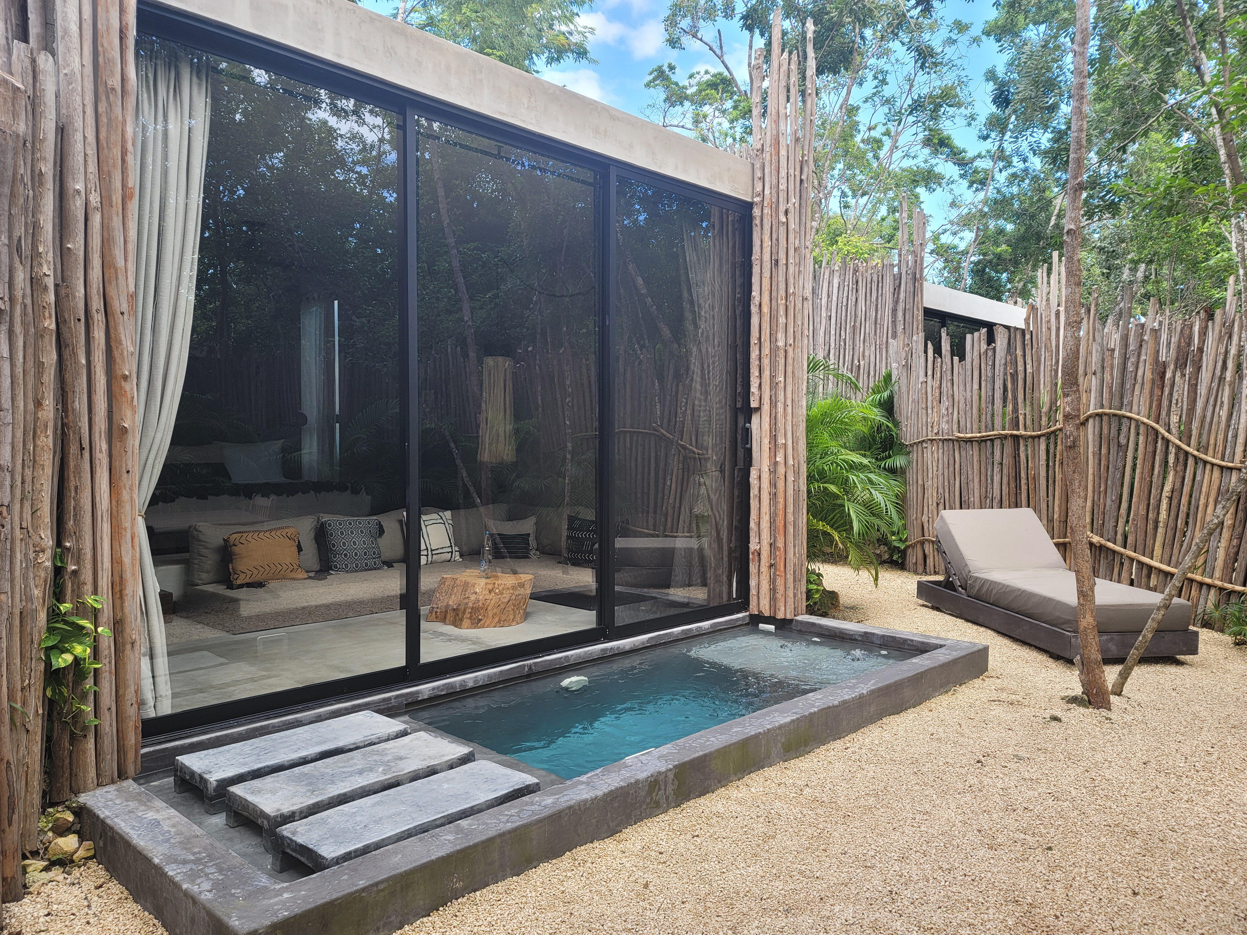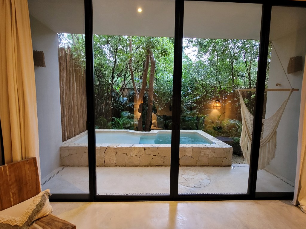 Una Vida (https://www.unavidatulum.com) was the last hotel that I stayed at before my departure back to the states. Una Vida is the sister property to Hotel Bardo and they are actually connected which was super convenient because I was going to be out sightseeing before check in and the staff at Hotel Bardo took my luggage over to Una Vida for safekeeping until my 3pm check in. Also, you can bounce back and forth between each property and enjoy the amenities that each offer. Una Vida is a vibe just like Hotel Bardo! The ambience is so chill especially at night time. My room came with an outdoor pool and with all of the trees I definitely felt like I was in the jungle! I have nothing but good things to say about my stay here.
