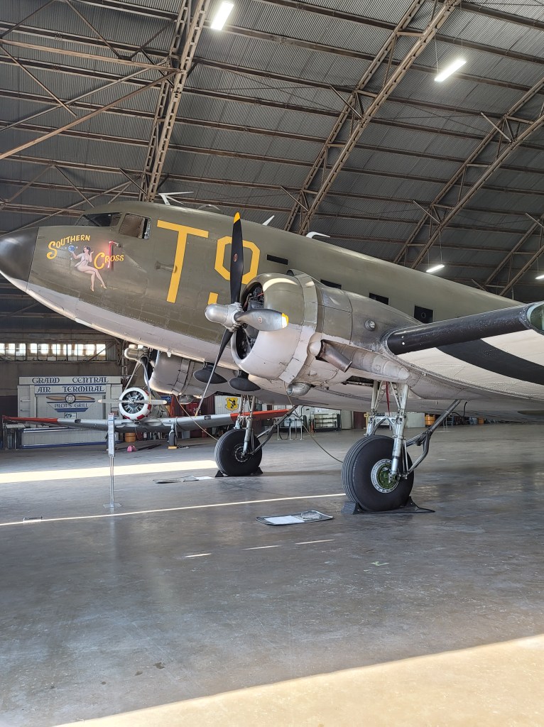 The Southern Cross was built in 1941 as a passenger aircraft for TWA. After the attack on Pearl Harbor the aircraft was called into action to carry troops and service the military during WWII as well as the Korean and Vietnam Wars.