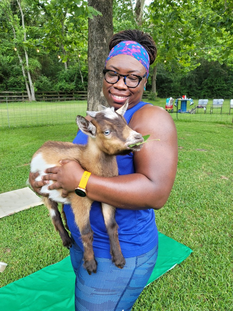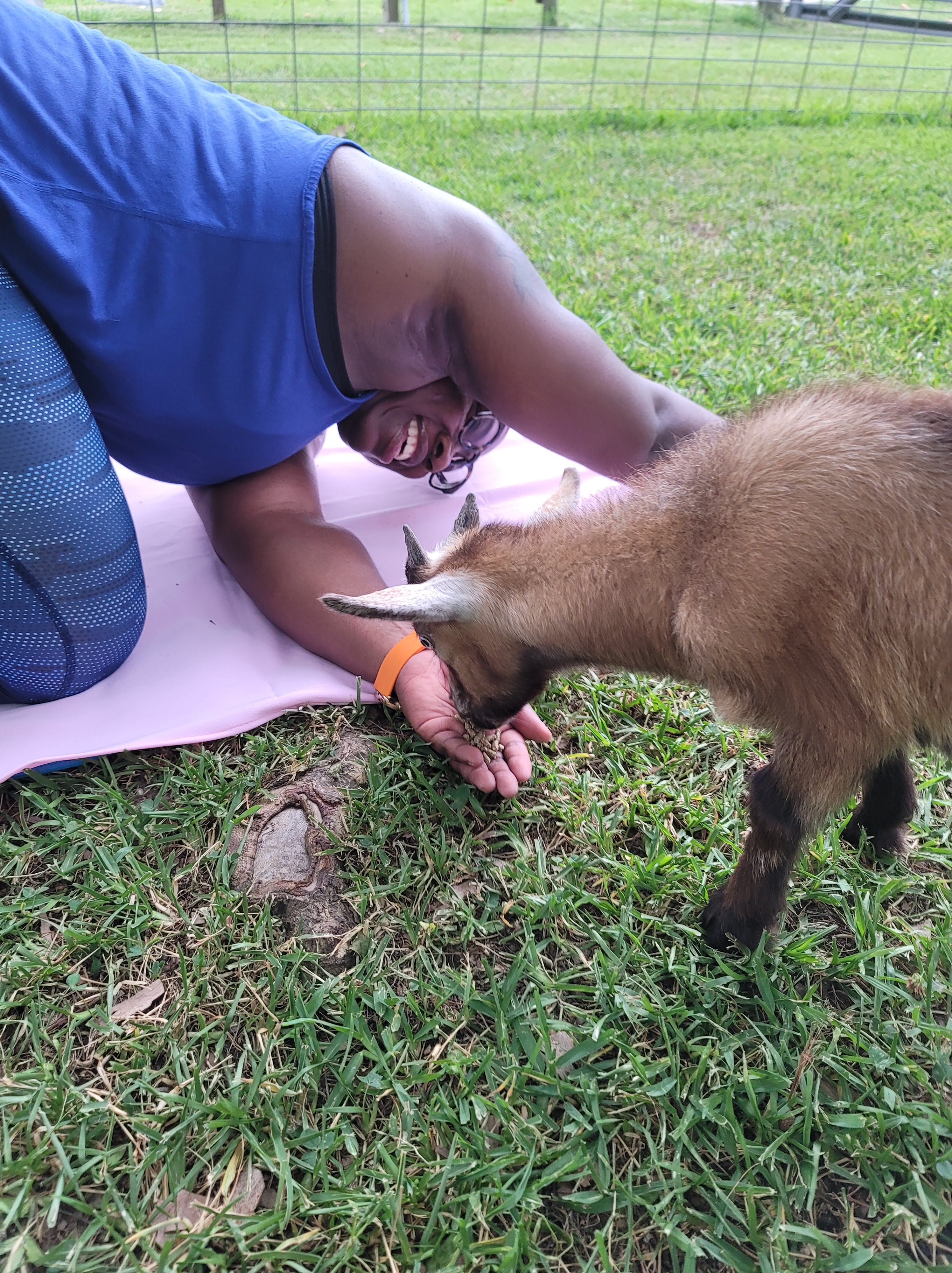 You may have been scrolling through social media and seen a picture or video of someone doing yoga with a goat. Or better yet a few goats! Let me be the first to tell you that it’s a real thing. I tried goat yoga once a few years ago and decided to go back for another class. I remembered that I had a great time and I figured that I would add this to my self care routine this weekend.