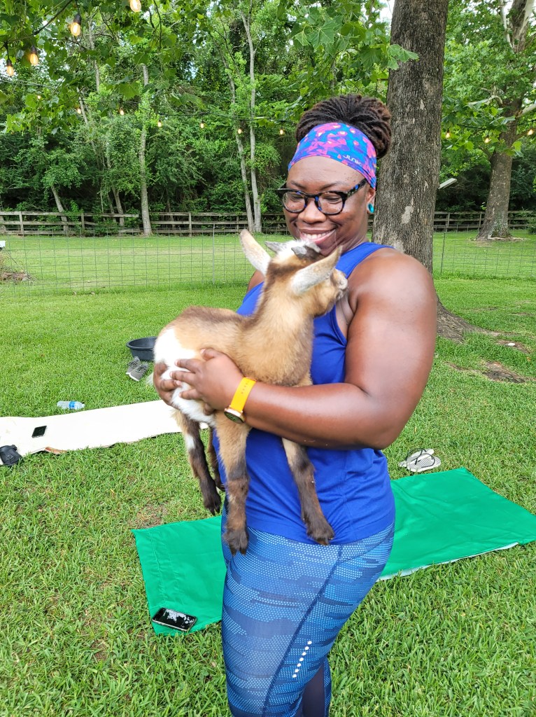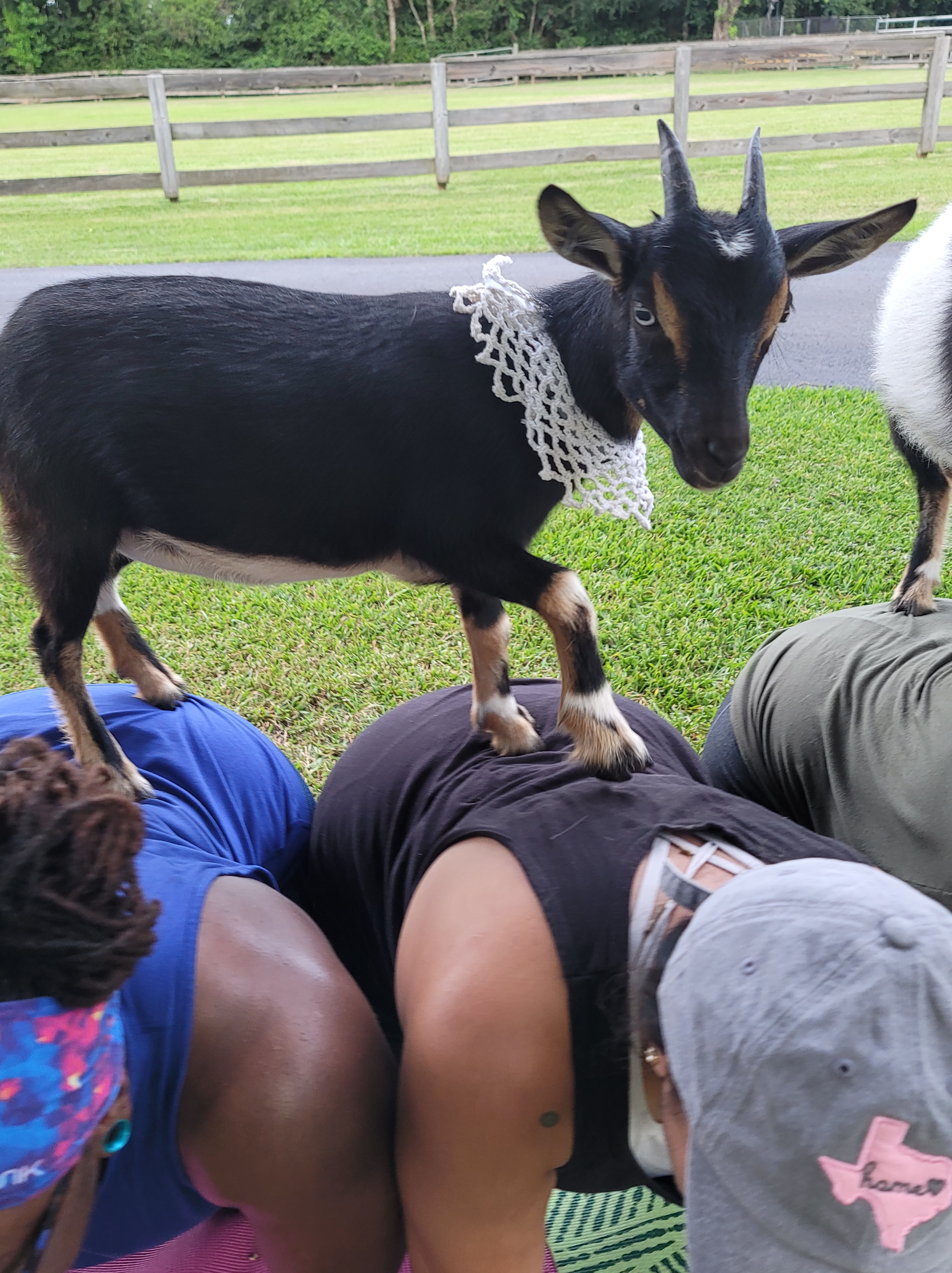 The class can be booked online (https://www.tomballgoatyago.com/) and you will need to bring a yoga mat with you. Don’t forget to bring some water and your phone for pictures. Be advised that this class can be held underneath a covered area so the weather won’t play a factor in your experience or if the weather is nice it can be held outside in the open area. Some goat yoga experiences are held outside only so doing it at this location is a bonus!