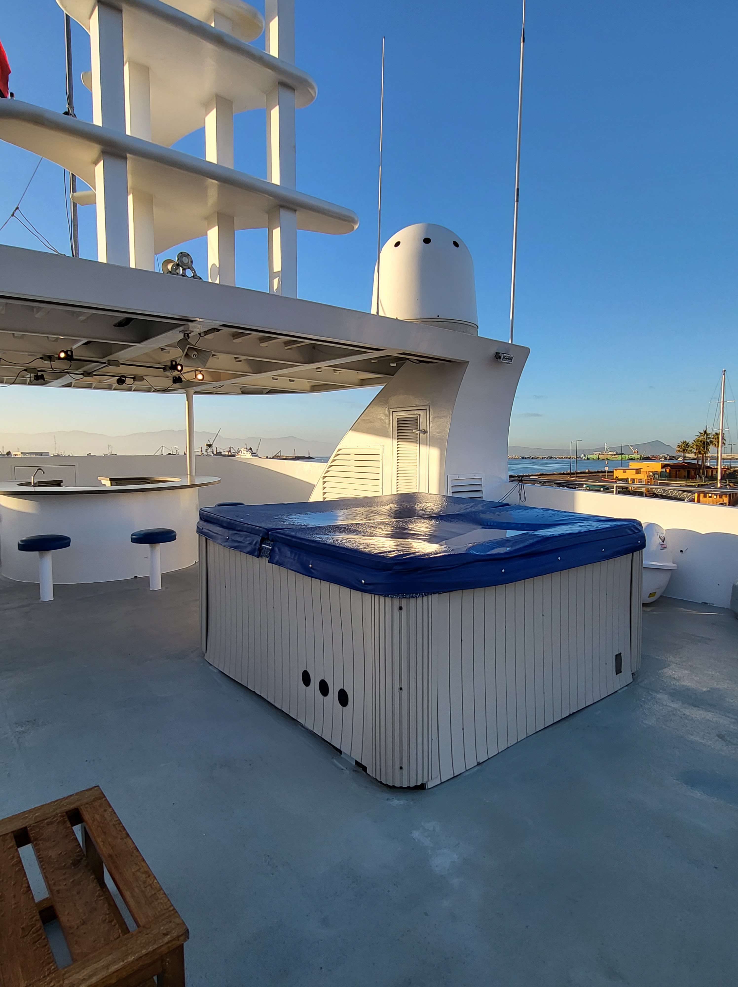 🔹️Boat: Belle Amie. This liveaboard has ample living and dining space and there is a bar and hot tub available.