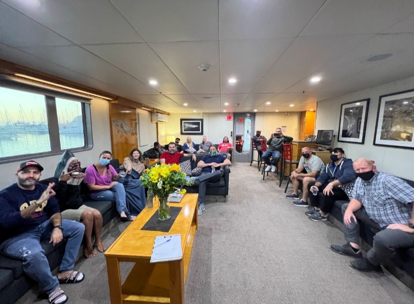 We boarded the boat around 10pm and we were welcomed by the captain (El Capitan Shep). He explained what was to come in the next few days, how the weather would play a factor in our departure time, and answered any questions that we had. We were notified earlier in the day about the weather situation and that we may be delayed for 1 day. Some divers decided to reschedule but 17 of us made the decision to stay on the trip with fingers crossed.