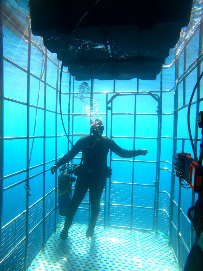 Diving in Isla Guadalupe is always within a cage. Its against Mexican law to dive outside the cage. It’s not just the high numbers of the sharks that makes Isla Guadalupe such a popular destination, but also the conditions. During shark season, which runs July to November, the water temperatures remain between 67–72 F (20–22 C). That combined with the usually fantastic visibility of near 140 feet (40 meters) in beautiful, indigo-blue water, provide the best conditions for Great White shark diving in the world.